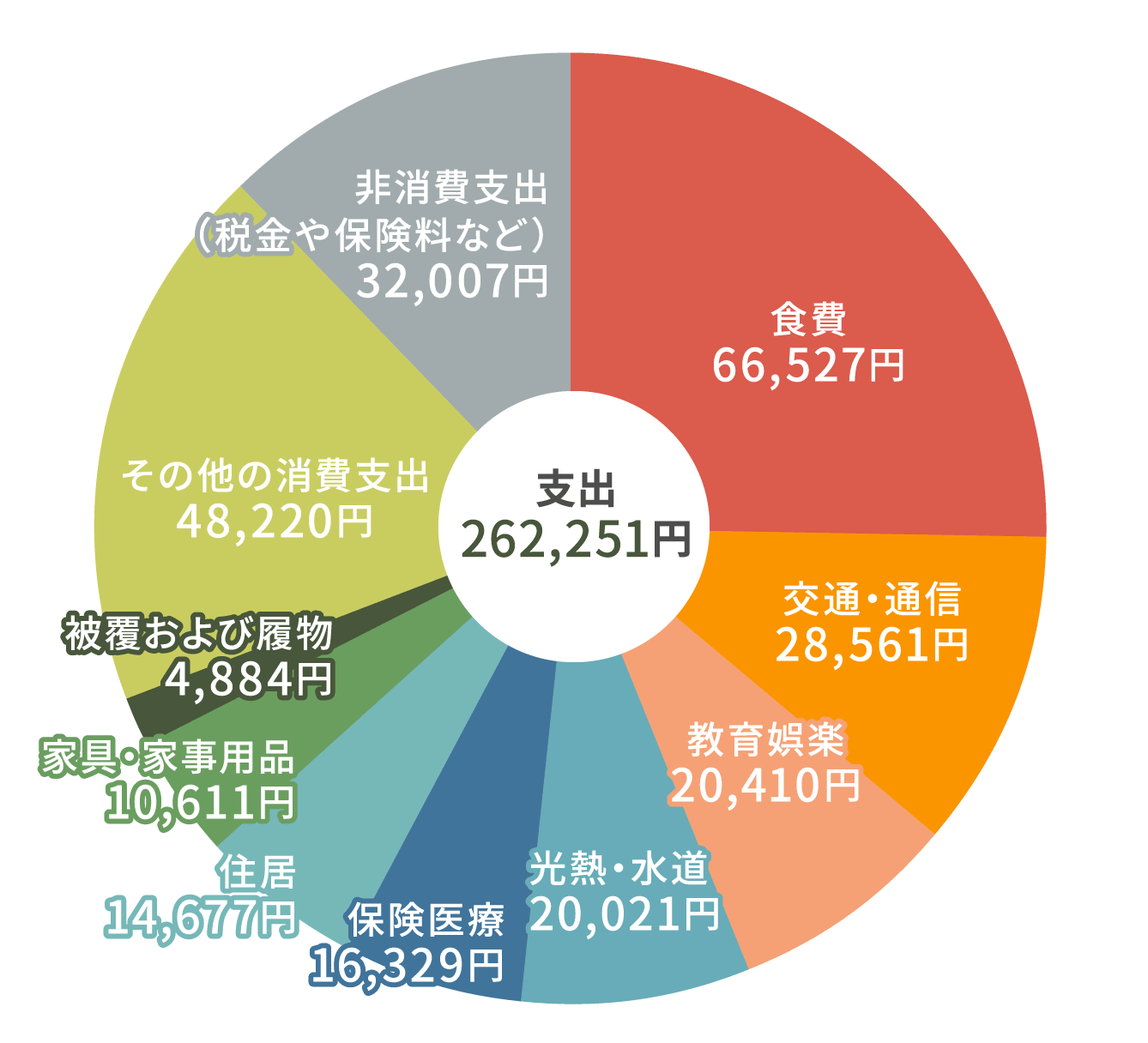 - 出典:「家計調査/ 家計収支編 二人以上の世帯 詳細結果表」(2020年)|総務省